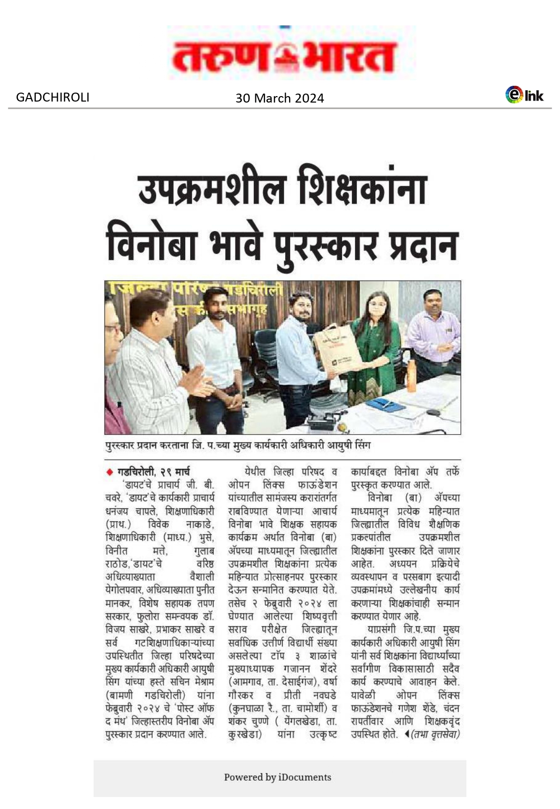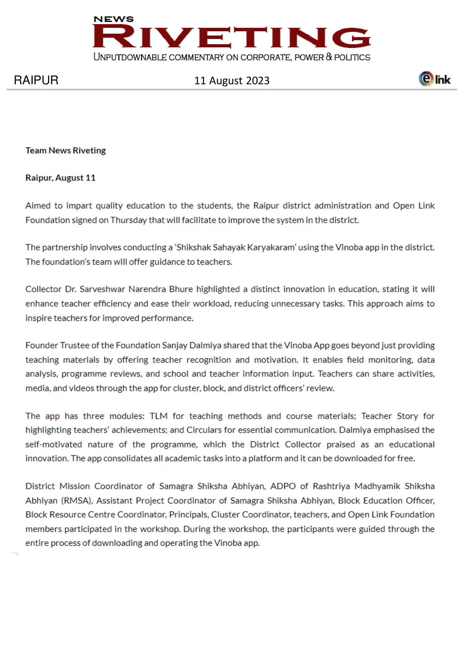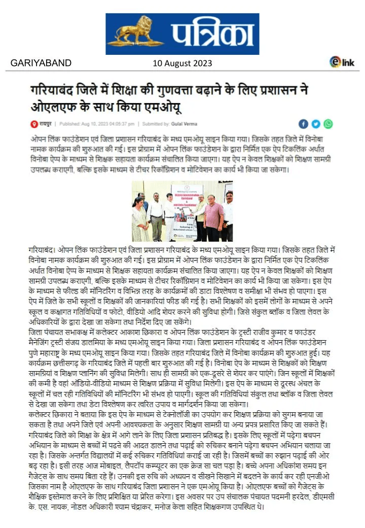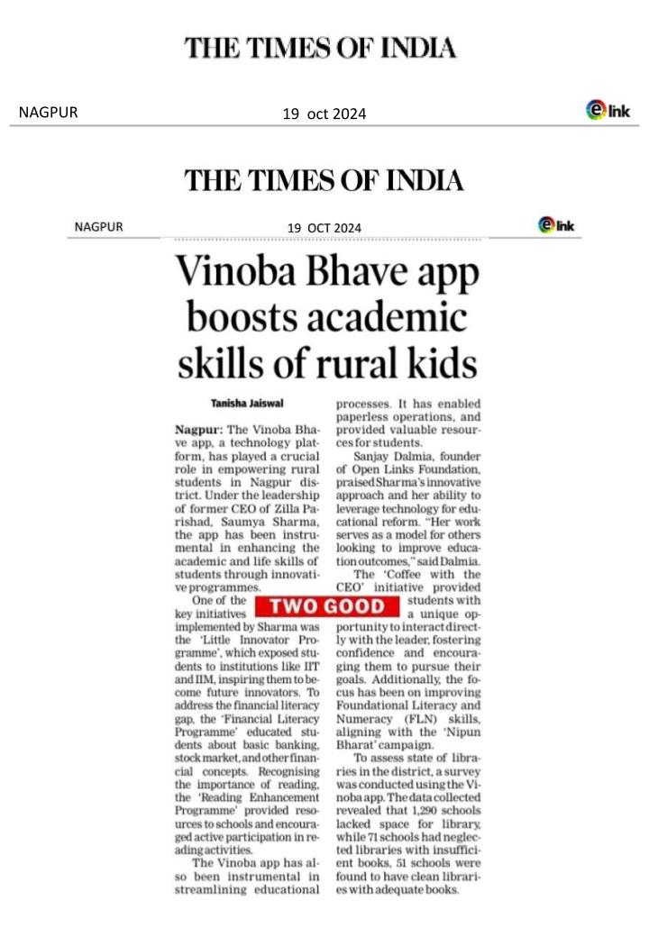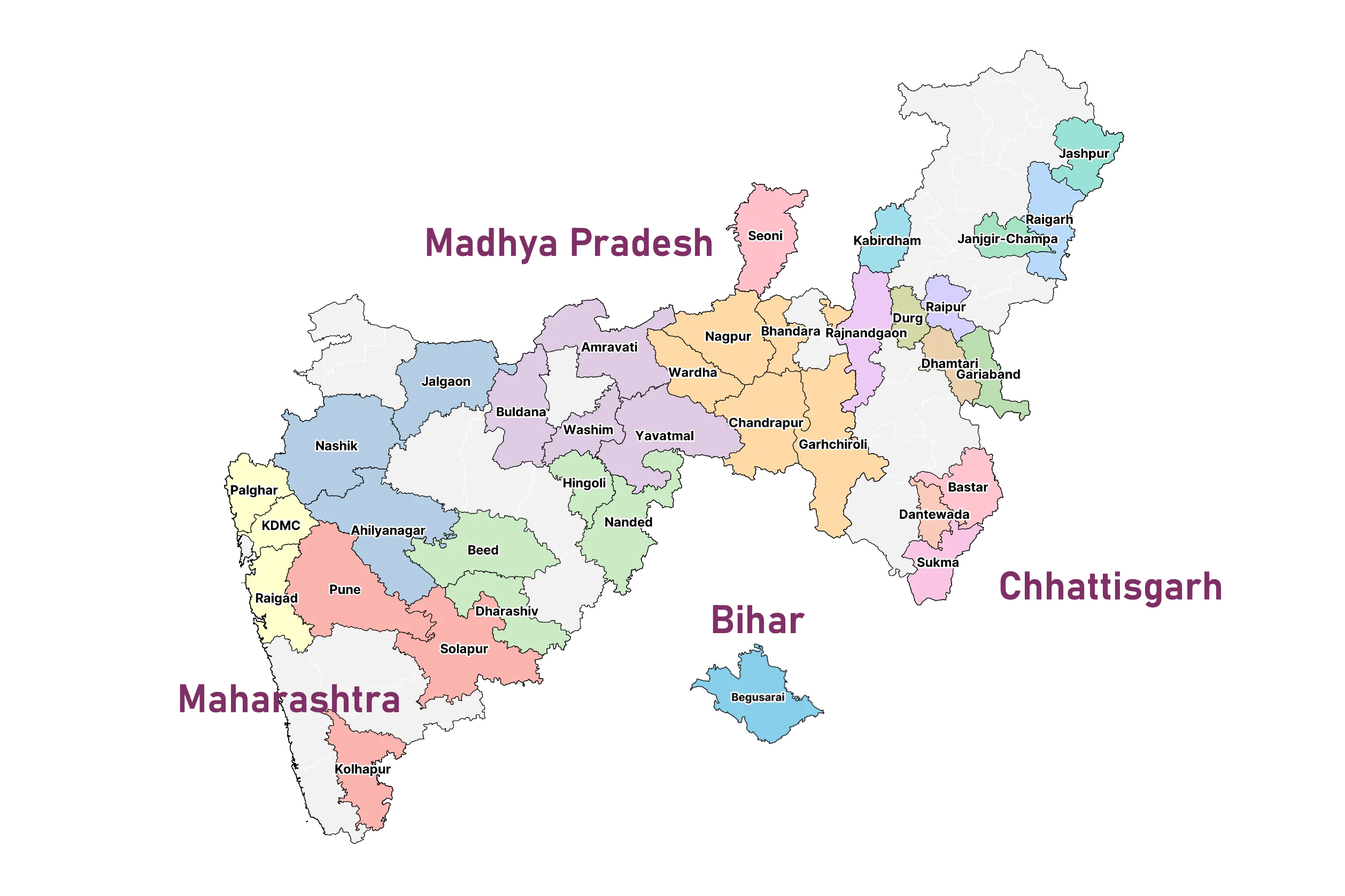 Piloted in Pune district in 2022, the Vinoba program has rapidly grown to 35 districts across Maharashtra, Chhattisgarh, Madhya Pradesh, and Bihar.